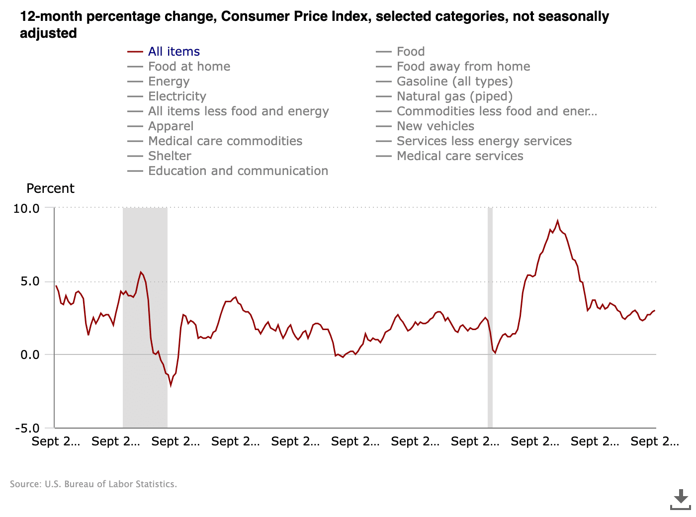 طبق دادههای رسمی دفتر آمار کار ایالات متحده (BLS)، هر دو شاخص CPI و Core CPI ماهانه به اندازه ۰.۱ درصد کمتر از سطوح مورد انتظار خود بودند و در تایم فریم سالانه هم به حدود ۳ درصد رسیدند.