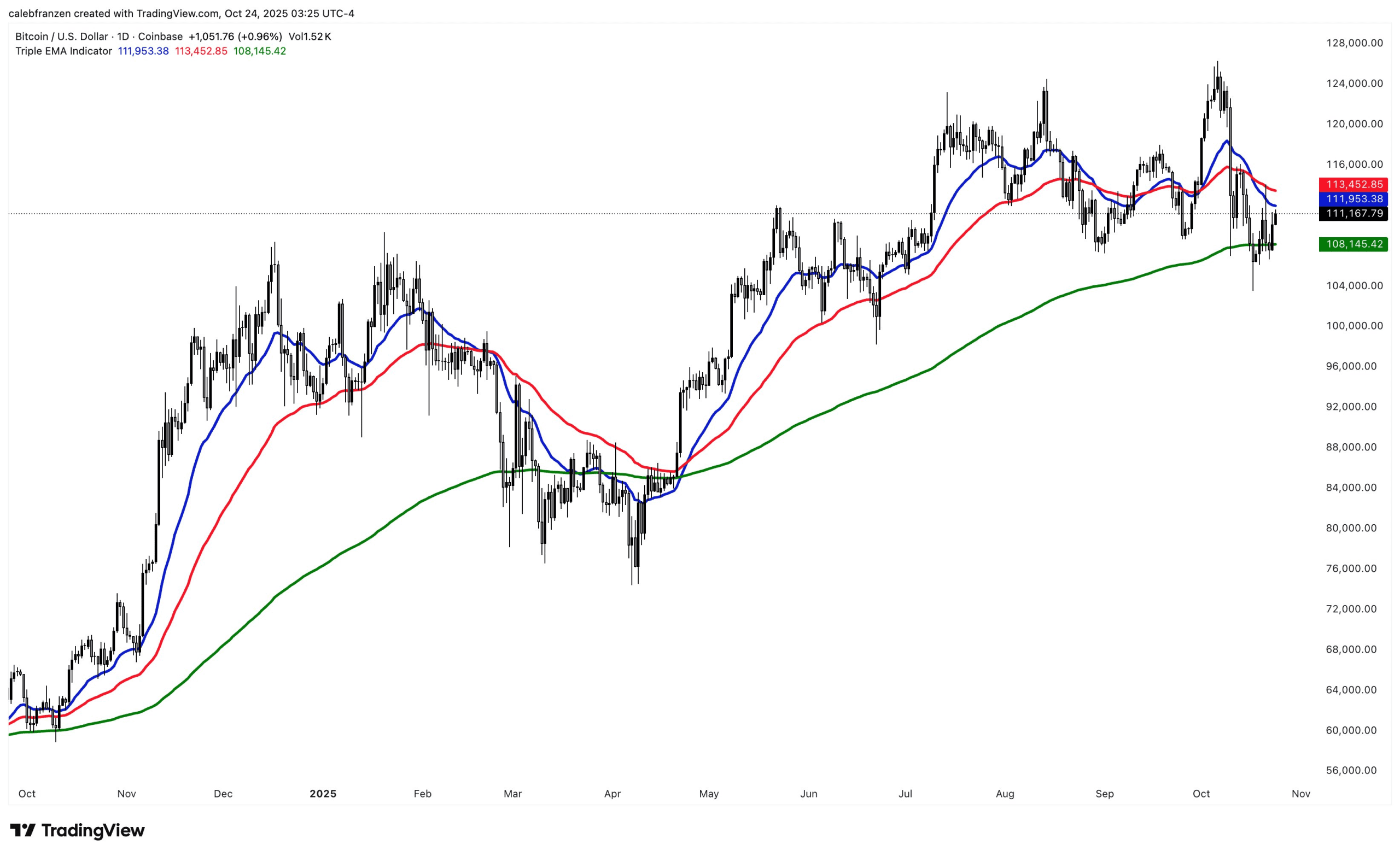 دیروز قیمت بیت کوین به ۱۱۲٬۰۰۰ دلار رسید ولی نتوانست از آن عبور کند. شاخص قیمت مصرفکننده (CPI) در ماه سپتامبر (شهریور) در کل پایینتر از حد انتظار بود و احتمال کاهش نرخ بهره را تقویت کرد.