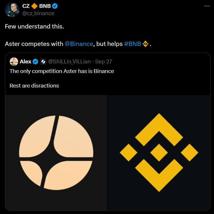 چانگپنگ ژائو در شبکه اجتماعی X (توییتر سابق) به پروژه استر (Aster) تبریک گفت. به همین دلیل اعضای جامعه اکنون گمانپردازی میکنند که شاید او پشت این پروژه باشد.
