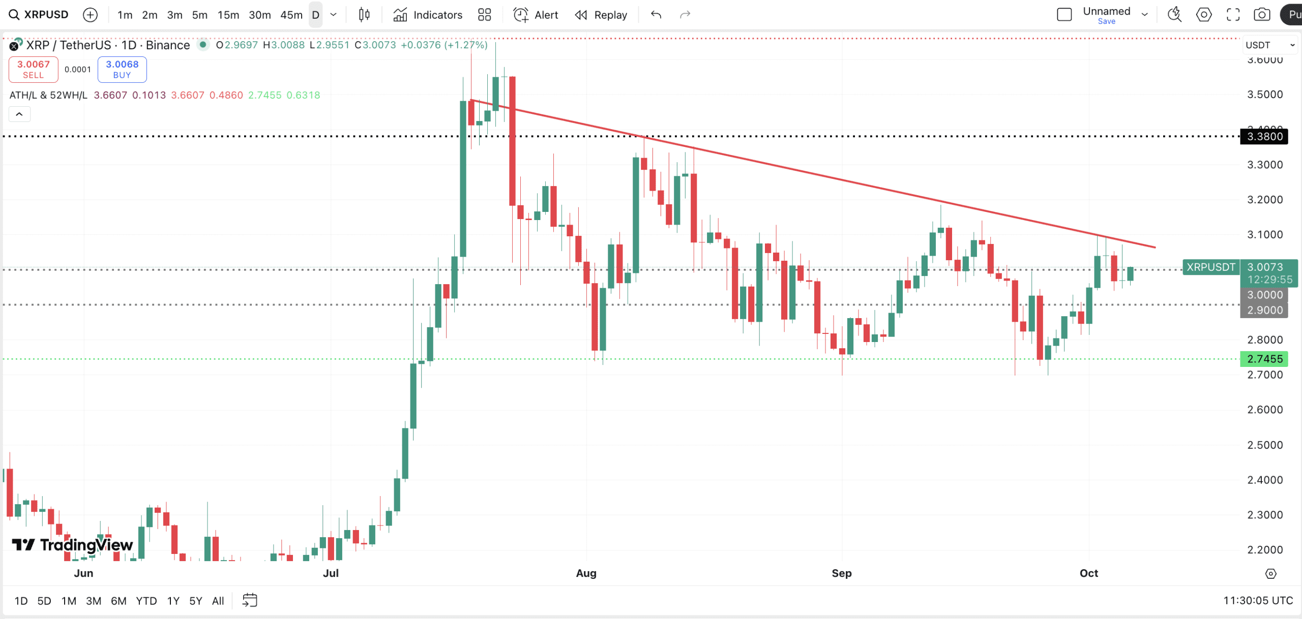 در صورت شکست معتبر ضلع بالایی مثلث و تثبیت بالای محدوده ۲.۹۰ تا ۳ دلار، هدفهای بعدی میتوانند نواحی مقاومتی ۳.۲۰ دلار و حتی ۴ دلار باشند. از سوی دیگ اگر این محدوده شکسته نشود، قیمت احتمالاً بار دیگر به سمت ضلع پایینی مثلث حرکت خواهد کرد. این ضلع حوالی ۲.۴۰ دلار قرار دارد و حمایت مهمی محسوب میشود.