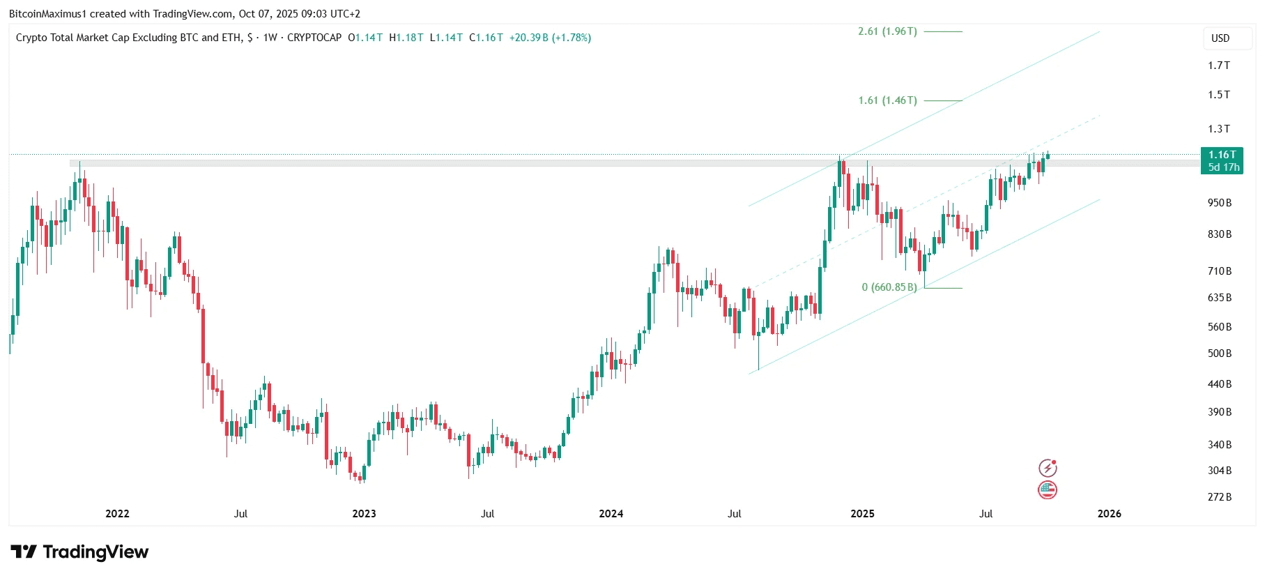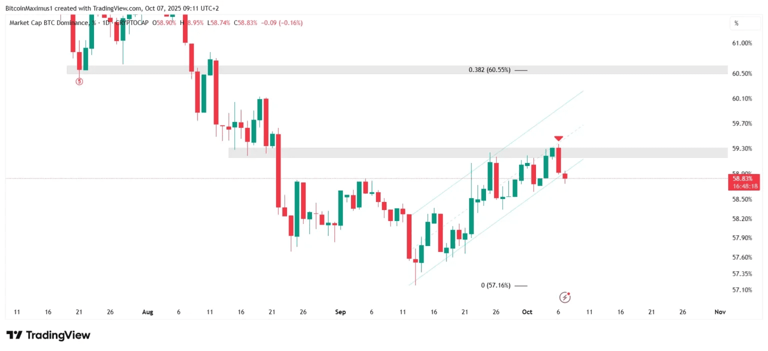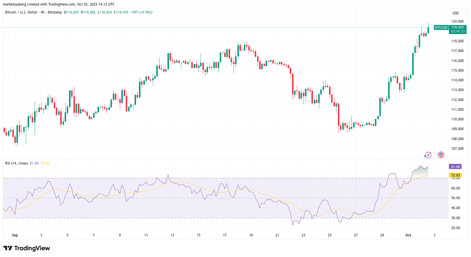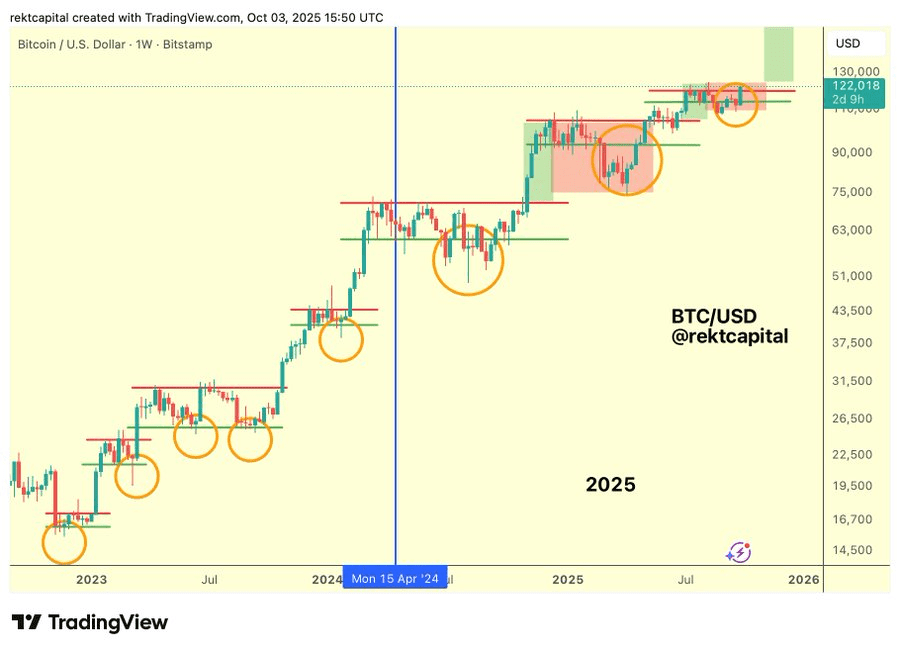 بیت کوین در آستانه ثبت یک کلوز روزانه درون رنجش است تا روند بازپسگیری را آغاز کند. بیت کوین تنها به یک کلوز روزانه بالای حدود ۱۱۷,۲۰۰ دلار نیاز دارد تا برای آزمودن دوباره محدوده ۱۲۰٬۰۰۰ دلار به بالا آماده شود.