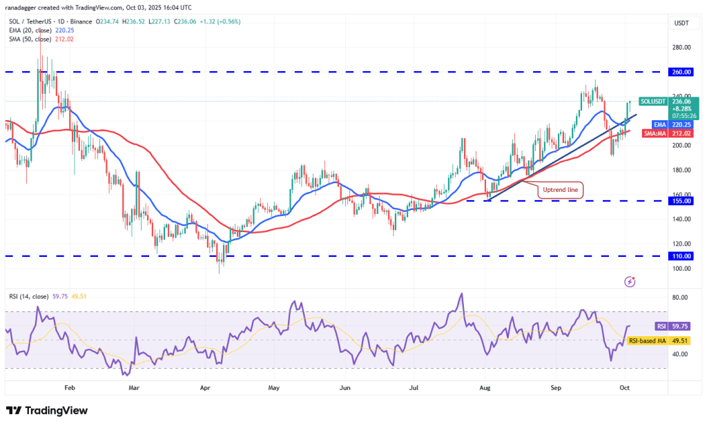 در سمت مقابل، اگر خریداران بتوانند قیمت سولانا را به بالای میانگینهای متحرک نمایی و ساده برسانند، کنترل بازار را پس خواهند گرفت و احتمال رشد تا مقاومت بالاسری ۲۶۰ دلار وجود دارد.
