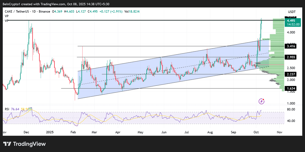 طبق دادههای تریدینگویو، قیمت پنکیک سواپ در یک الگوی مثلث متقارن قرار گرفته است. کفهای بالاتر از ابتدای سال و سقفهای پایینتر، محدودهای فشرده ایجاد کردهاند که اکنون قیمت در نزدیکی ضلع بالایی این الگو قرار دارد.