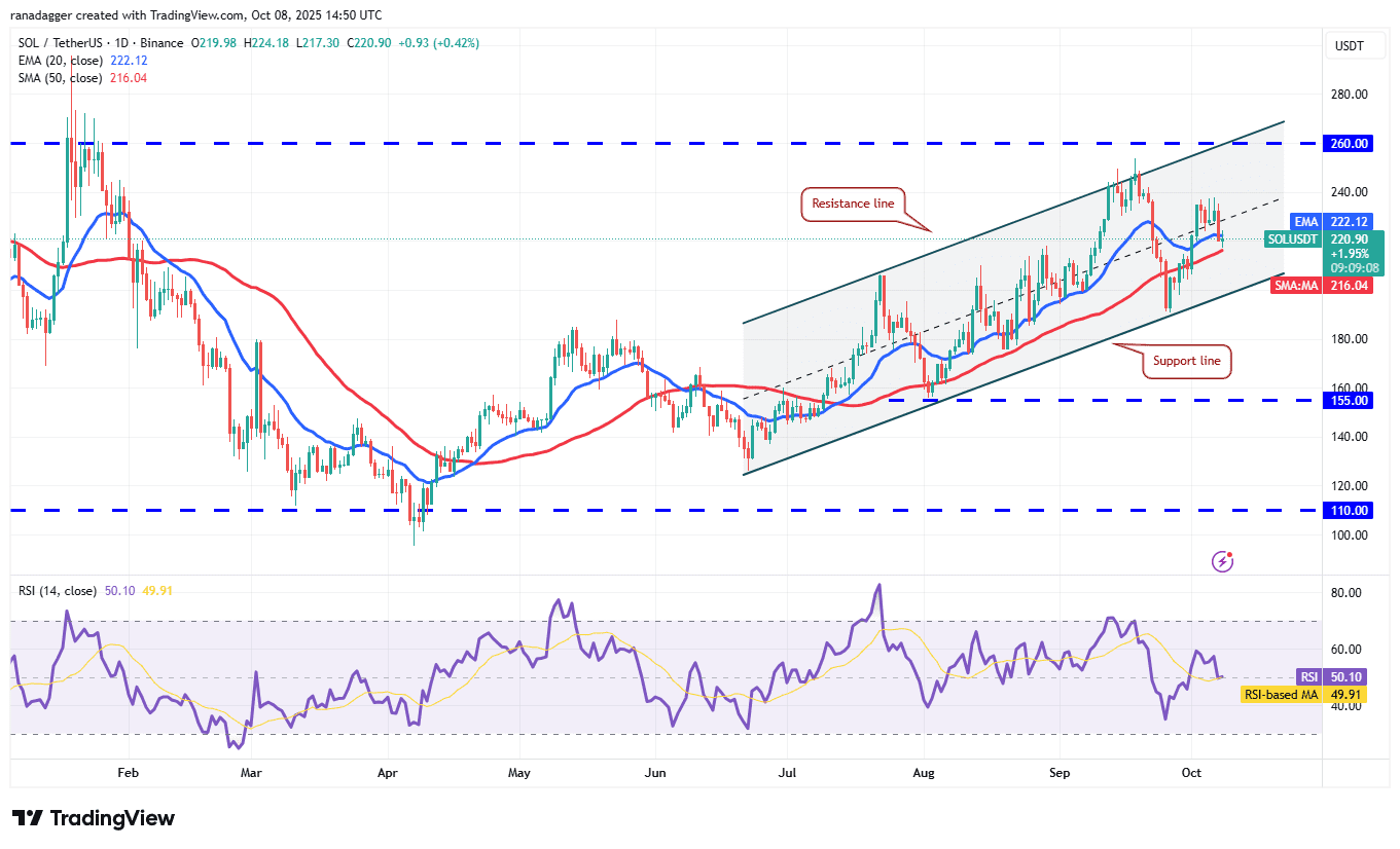 احتمالاً اصلاح قیمت در نزدیکی میانگین متحرک نمایی ۲۰ روزه (موج آبی، ۲۲۵ دلار) حمایت خواهد شد. اگر قیمت با قدرت از این سطح بازگردد، خریداران دوباره تلاش خواهند کرد مانع ۲۶۰ دلاری را پشت سر بگذارند. در صورت موفقیت در انجام این کار، ارز SOL میتواند بهسرعت به سمت ۲۹۵ دلار اوج بگیرد.