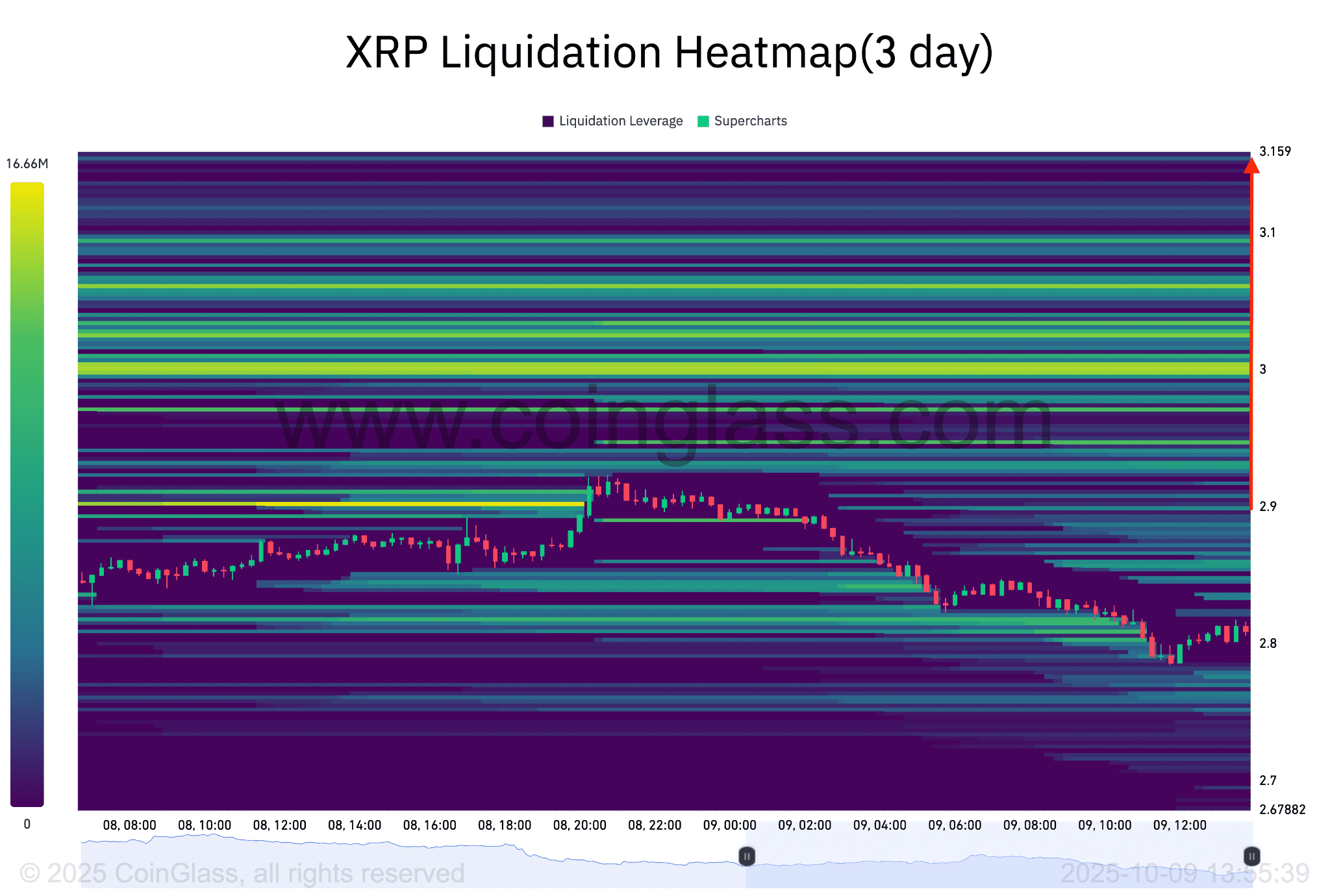 با این حال، احساسات نزولی در کوتاهمدت هنوز در میان معاملهگران اتریوم غالب است. این عدمتعادل در نقشه لیکوییدیشن قابل مشاهده است، جایی که میزان لیکویید شدن معاملات فروش (سمت راست) کمی بیشتر از موقعیتهای خرید است.