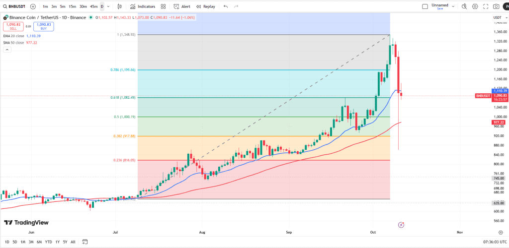 برعکس در سناریوی صعودی، اگر قیمت افزایش یابد و کندل قیمت بالای ۱٬۳۵۰ دلار بسته شود، به معنای حفظ کنترل بازار توسط خریداران است. در این صورت، ارز BNB ممکن است تا سطح ۱٬۶۰۹ دلار رشد کند.