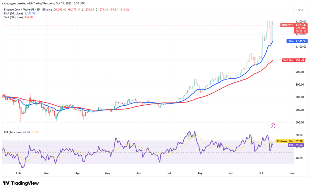 به گزارش کوین تلگراف، در روزهای اخیر، بایننس کوین نوسانات قابل توجهی را تجربه کرده است. فروشندگان روز جمعه قیمت را به زیر میانگین متحرک نمایی ۲۰ روزه (موج آبی، ۱٬۱۴۵ دلار) رساندند، اما خریداران روز شنبه دوباره آن را پس گرفتند.