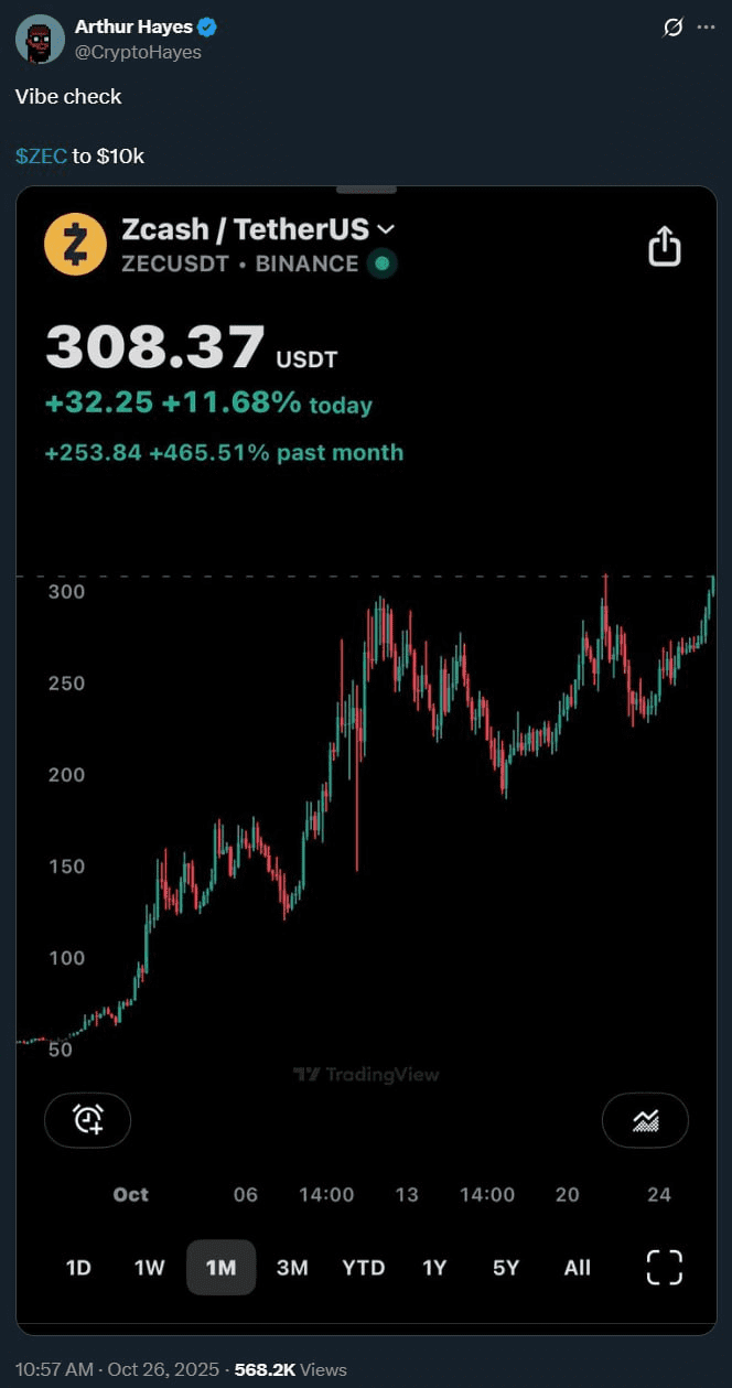 پس از سالها که بسیاری از تحلیلگران و فعالان بازار کریپتو، زیکش را پروژهای بیفایده و کمارزش میدانستند؛ اکنون آرتور هیز، بنیانگذار پلتفرم BitMEX، باور دارد که قیمت این رمزارز میتواند تا سطح ۱۰٬۰۰۰ دلار افزایش یابد. در هفتههای اخیر، ZEC دوباره به یکی از داغترین موضوعات بازار تبدیل شده است. قیمت زیکش به حدود ۳۵۰ دلار رسیده و ارزش بازار آن از ۵.۷ میلیارد دلار فراتر رفته؛ رقمی که موجب شد جایگاه آن حتی از تون کوین (TON) نیز پیشی بگیرد. با این حال طبق دادههای MiningPoolStats، استخر ViaBTC بیشتر از ۵۰ درصد از توان پردازشی (هشریت) شبکه Zcash را در اختیار گرفته و عملاً کنترل تولید بلاکها را بهدست گرفته است. چنین مشکلی در بازار مونرو باعث شده بود قیمت XMR بیشتر از ۳۰ درصد سقوط کند!