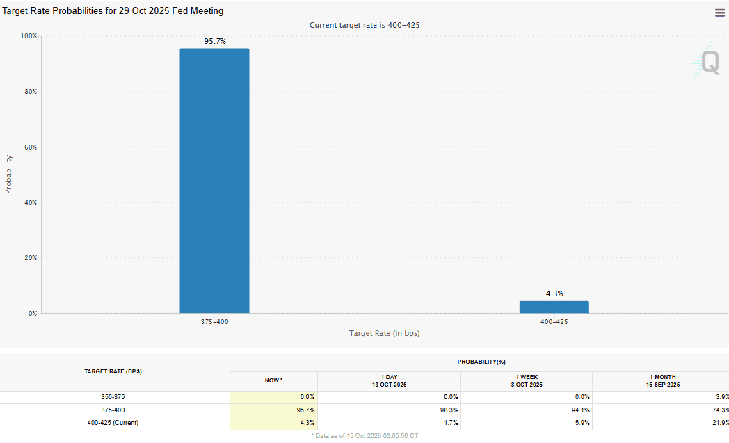 در همین حال، تعطیلی دولت فدرال آمریکا همچنان ادامه دارد و هیچ نشانه‌ای از حل سریع آن دیده نمی‌شود. توقف انتشار داده‌های رسمی اقتصادی باعث شده فدرال رزرو در تصمیم‌گیری‌های آتی خود دسترسی محدودی به داده‌های جدید داشته باشد، امری که از نگاه بازار می‌تواند به معنای ادامه مسیر کاهش نرخ بهره باشد.