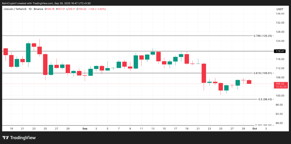 میانگین متحرک نمایی ۲۰ روزه (موج آبی، ۲۳.۷۱ دلار) در حال صافشدن است و RSI نزدیک به سطح میانی قرار دارد؛ این شرایط تعادل بین عرضه و تقاضا را نشان میدهد. خریداران باید قیمت چین لینک را بالای خط روند نزولی تثبیت کنند تا مسیر برای رالی به سمت سطح ۲۷ دلار باز شود.